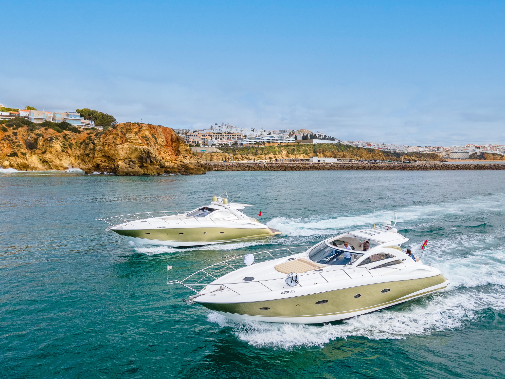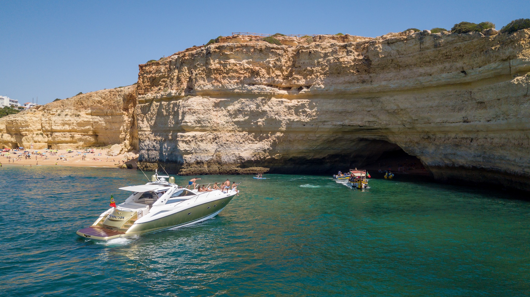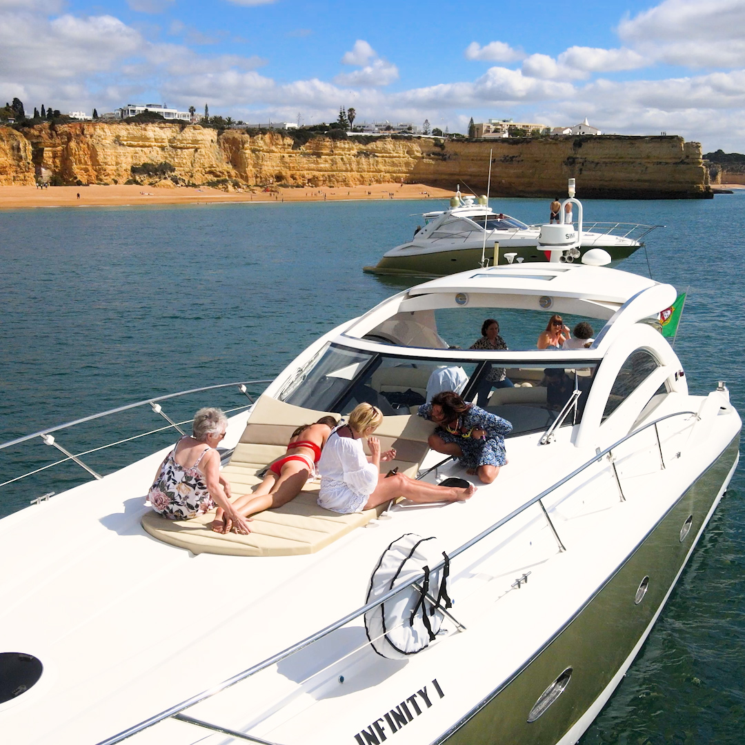 In this private charter you will sail along the magnificent coastline between Albufeira and Benagil, explore the incredible rock formations of this area of the Algarve coast, and enjoy a truly unique experience aboard a Luxury Sunseeker yacht.