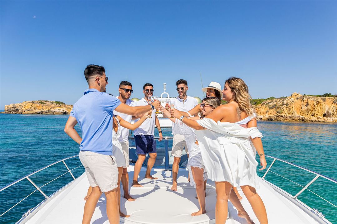 You will then depart from Albufeira Marina heading west at a leisurely pace so that you can enjoy the wonderful Algarve coastline. Upon reaching the bay of Nossa Senhora da Rocha the captain will make a stop where to swim and pause to enjoy our catering and drinks.